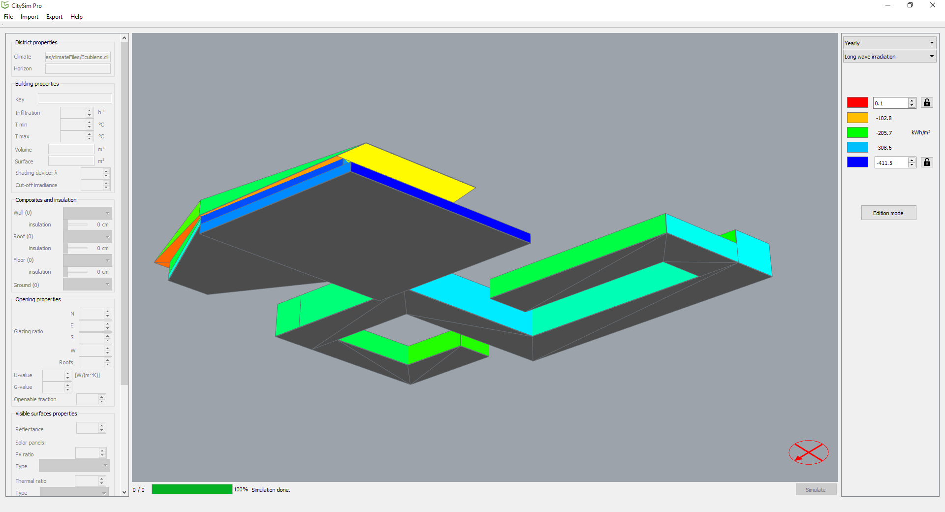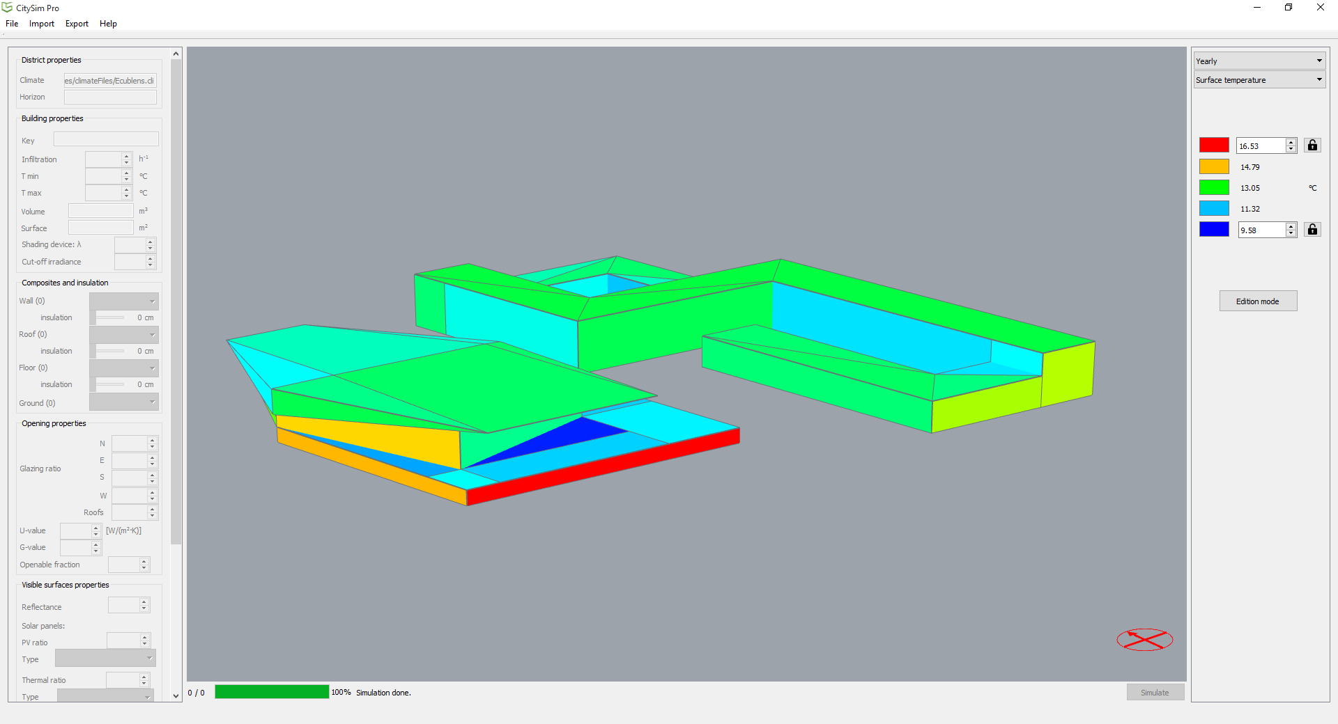 Built on top of the CitySim Solver, developed at the Solar Energy and Building Physics Laboratory of EPFL, CitySim Pro is a Graphical User Interface aiming at the simulation and optimisation of the sustainability of urban settlements.